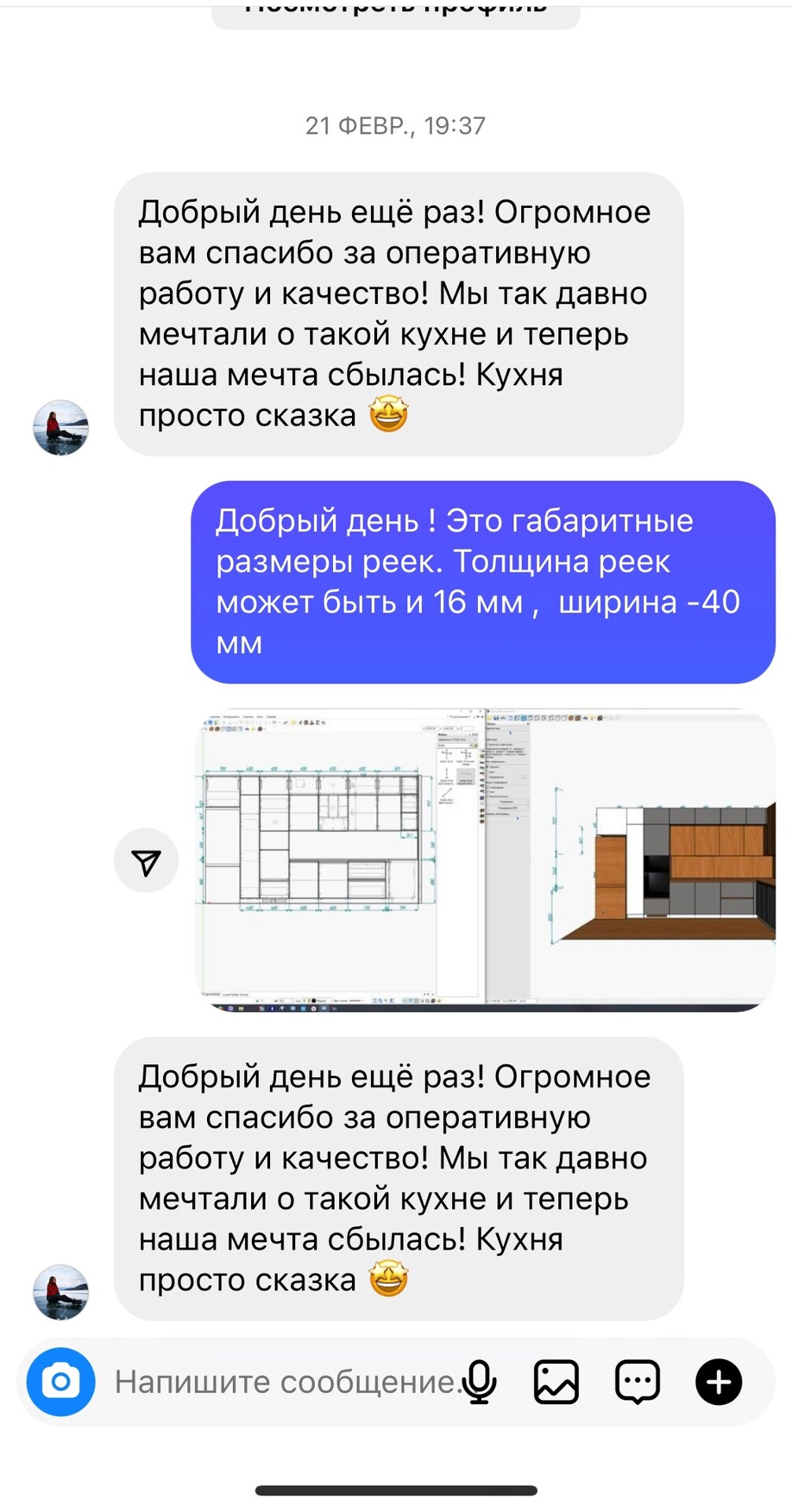 Напишите нам и наш менеджер рассчитает вашу кухню в нескольких вариантах. Вы поймете стоимость и целесообразность работы.